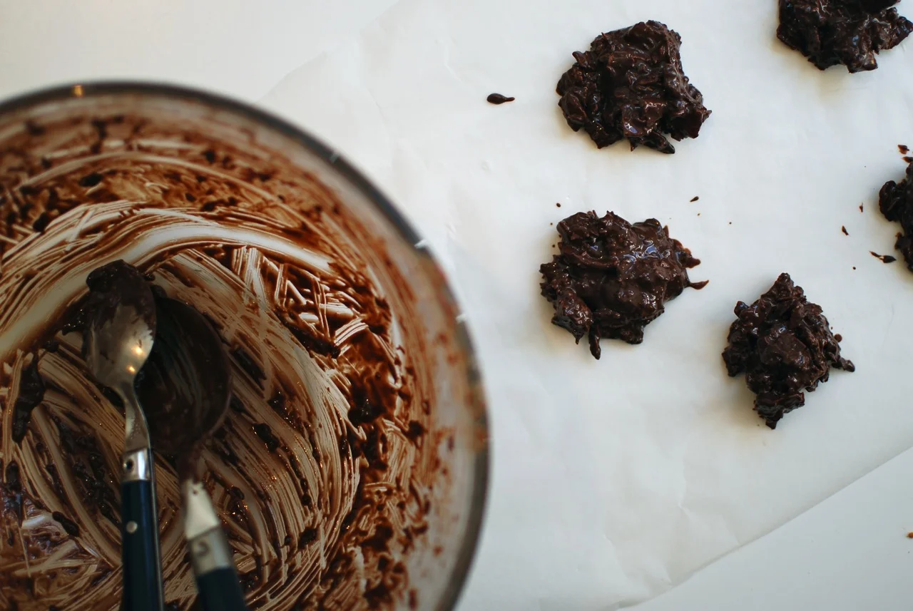 In a bain marie, melt all your chocolate. In a separate bowl, hand crush all your dry ingredients.